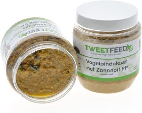 De vogelpindakaas in verschillende smaken welke geen zout bevat. Deze pindakaas is uitvoerig getest met andere merken en Tweetfeed Vogelpindakaas wordt zeer goed opgenomen door de vogels. Daarnaast bevind de pindakaas zich in een plastic pot.
